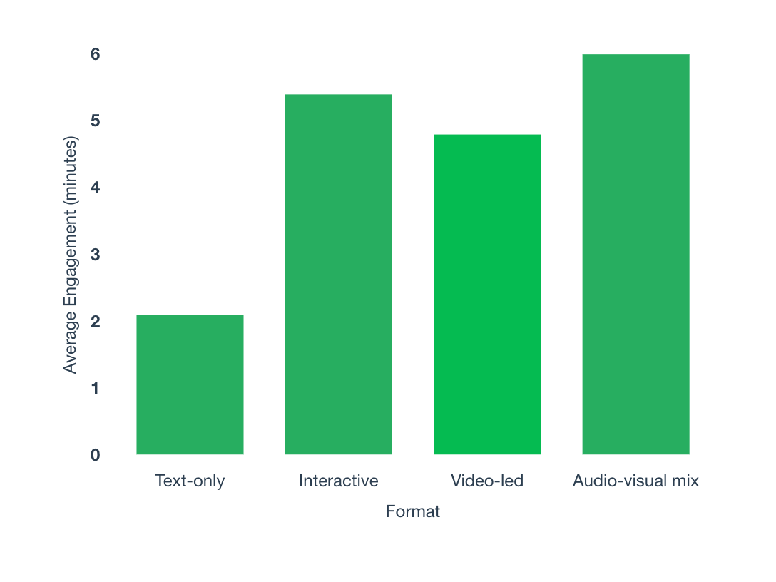 Research from Reuters Institute and Pew shows that interactive and multimedia formats increase time-on-page and recall rates compared to text-only articles. The shift is cognitive: visuals and interactivity activate emotional and analytical responses simultaneously. For editors, this means storytelling must now be designed as an experience, not merely a sequence of paragraphs.